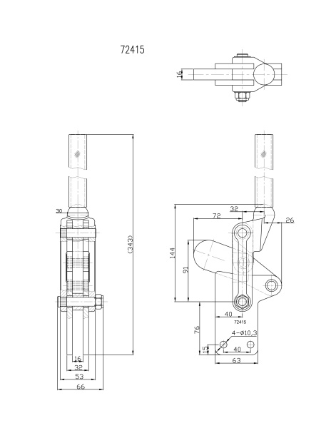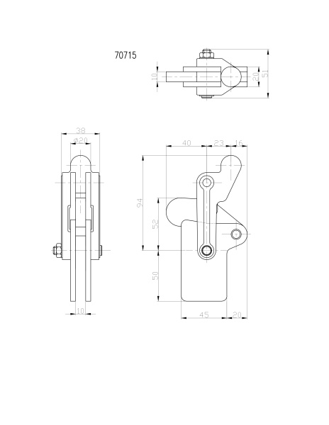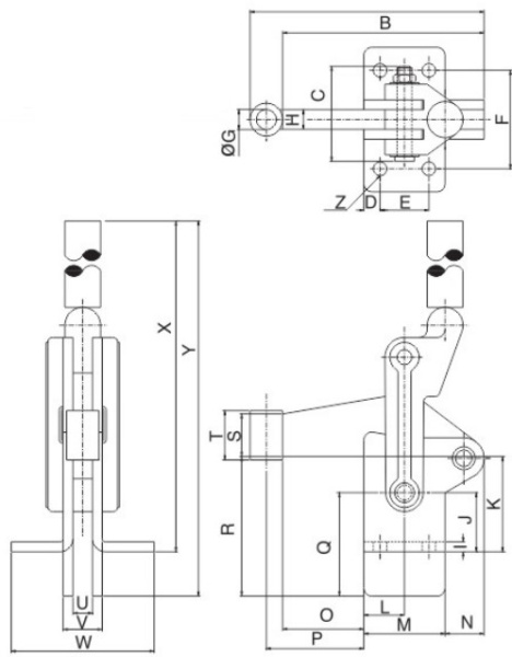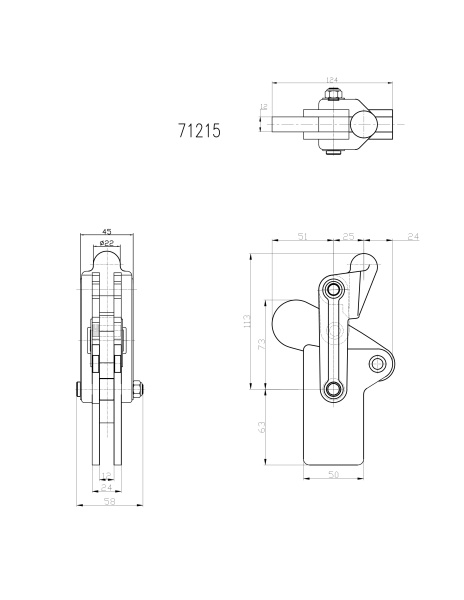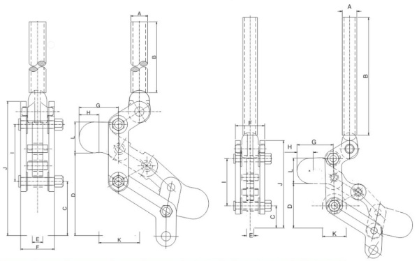 Угол раскрытия прижимной штанги, град.