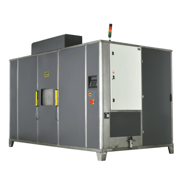 Эта машина позволяет мыть, ополаскивать и сушить детали массового производства перед сборкой и упаковкой. Как правило, детали в корзинах, которые движутся по конвейеру, попадают в машину вручную или пневматически. Дверца автоматически блокируется, а мойка, полоскание и сушка выполняются в барабане. Опционально можно подключить ультразвуковые блоки для повышения качества мойки. В этой модели можно использовать как и очистку с помощью распыления воды из форсунок, так и с помощью предварительного замачивания деталей в растворе и контакта с ультразвуковыми волнами.Сферы применения