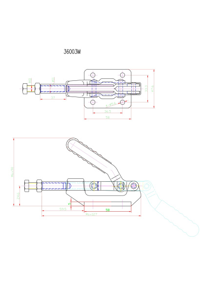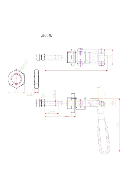 Угол раскрытия рукоятки, град.